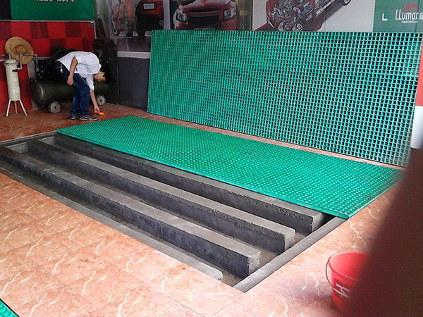 洗车房专用玻璃钢格栅的用途是铺设洗车工位四周的地板,用于不易滑、排微水,目前虽然一些洗车房排水工位用玻璃钢格栅排水,但也仅仅局限于排水沟上面的部位,不能全铺,如果用玻璃钢格栅板全铺洗车工作间成本太高,如果仅仅用玻璃钢格栅铺设洗车工位,那么排水是非常顺利的,但是工位四周还是会有不少水喷溅到地面,使工位四周地面留污水及地面湿滑,那么塑料洗车房排水板解决这一切问题,同时成本比使用玻璃钢格栅价钱合适,色彩亮丽!